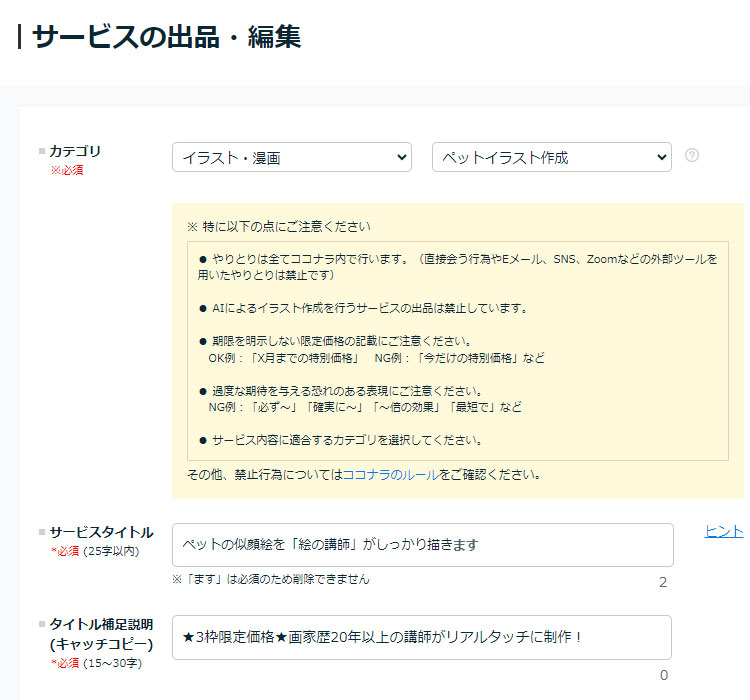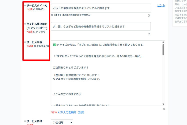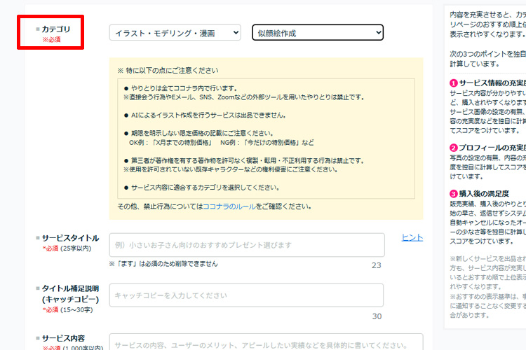 ここからの入力を適切に行い、ココナラの検索AIにどんどんアピールしていきましょう。