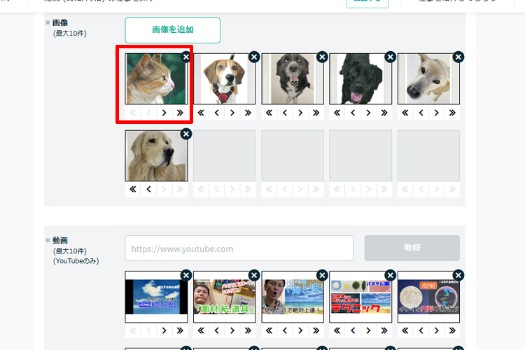上の画像の赤で囲った先頭の画像が「検索結果」のサムネイル画像として表示されますので、まずは一番自信のある画像を設定しておきましょう。