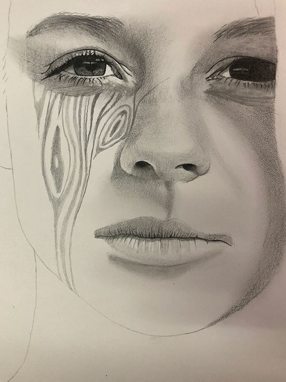 鉛筆で「木目の顔」を描いていきます。