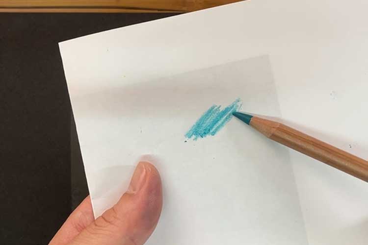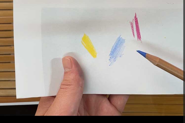 この時、芯先は出来るだけとがっていた方が描きやすいですね。サンドペーパーなどに押し当ててとがらせておきましょう。