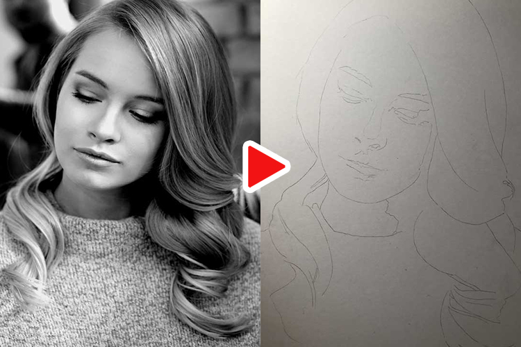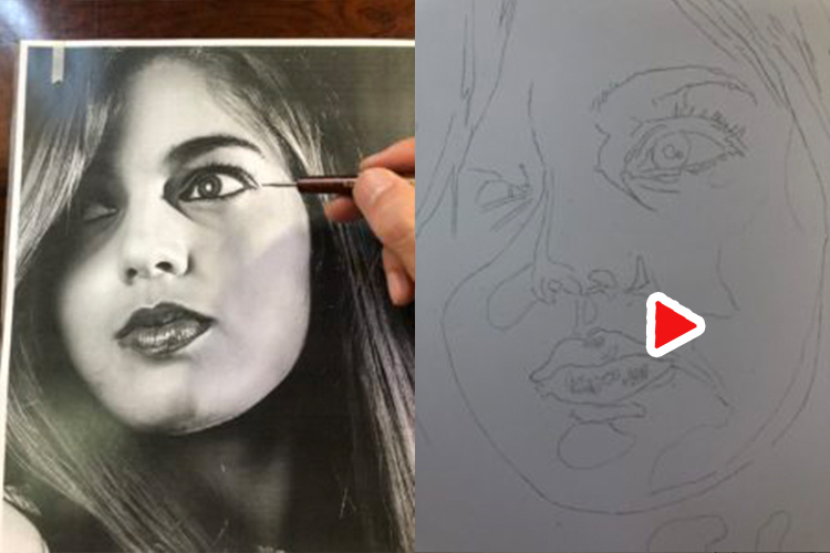 完全フリーハンドで一から描くとなると、相当なデッサン経験がない限り正確な輪郭線は中々描けません。特に「人物画」は、目の位置が少しズレただけでも「違う人物」になってしまいます。昔は私も何度も経験しました。笑
