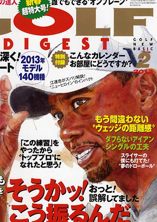 ゴルフ雑誌の「月刊Golfダイジェスト」の表紙を20年以上手がけているイラストレーターの尾中哲夫さんの作風がその良い例だと思います。